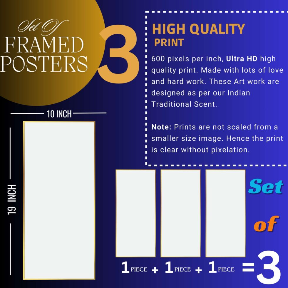 Set of Three large Wall Paintings for Wall Dacoration Golden Framed Wall Paintings for Living Room & Bedroom Wall Art for Home Decoration & Office Wall Décor (14×11 inch CH-LGD3-4)
