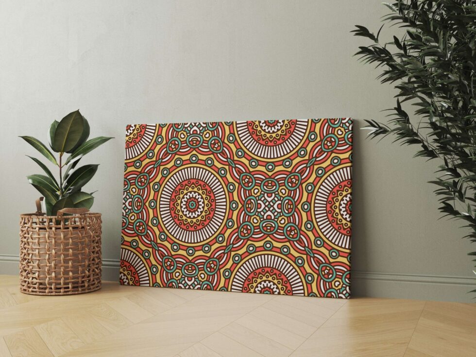 Transform your walls with a sophisticated golden round frame painting.