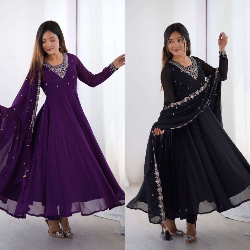Bring elegance and charm to your festive wardrobe with this luxurious 3 Piece Anarkali Set designed in Pure Soft Fox Georgette fabric. The fully flared gown features exquisite embroidery with beads and jari work on the yoke, sleeves, and dupatta, giving you a royal and graceful look. With a stunning 6.5 meter flair and comfortable cotton lining, this outfit offers the perfect balance of style and comfort. The dupatta is enhanced with fancy lace borders and stylish latkan details, while the ready-to-wear pant ensures effortless dressing. A perfect choice for weddings, festive events, and special celebrations.