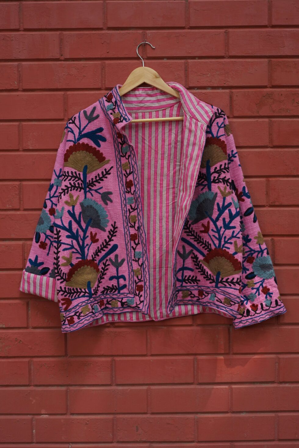 Luxurious velvet jacket featuring intricate Suzani embroidery. Perfect blend of elegance and tradition β€” ideal for festive and ethnic occasions.