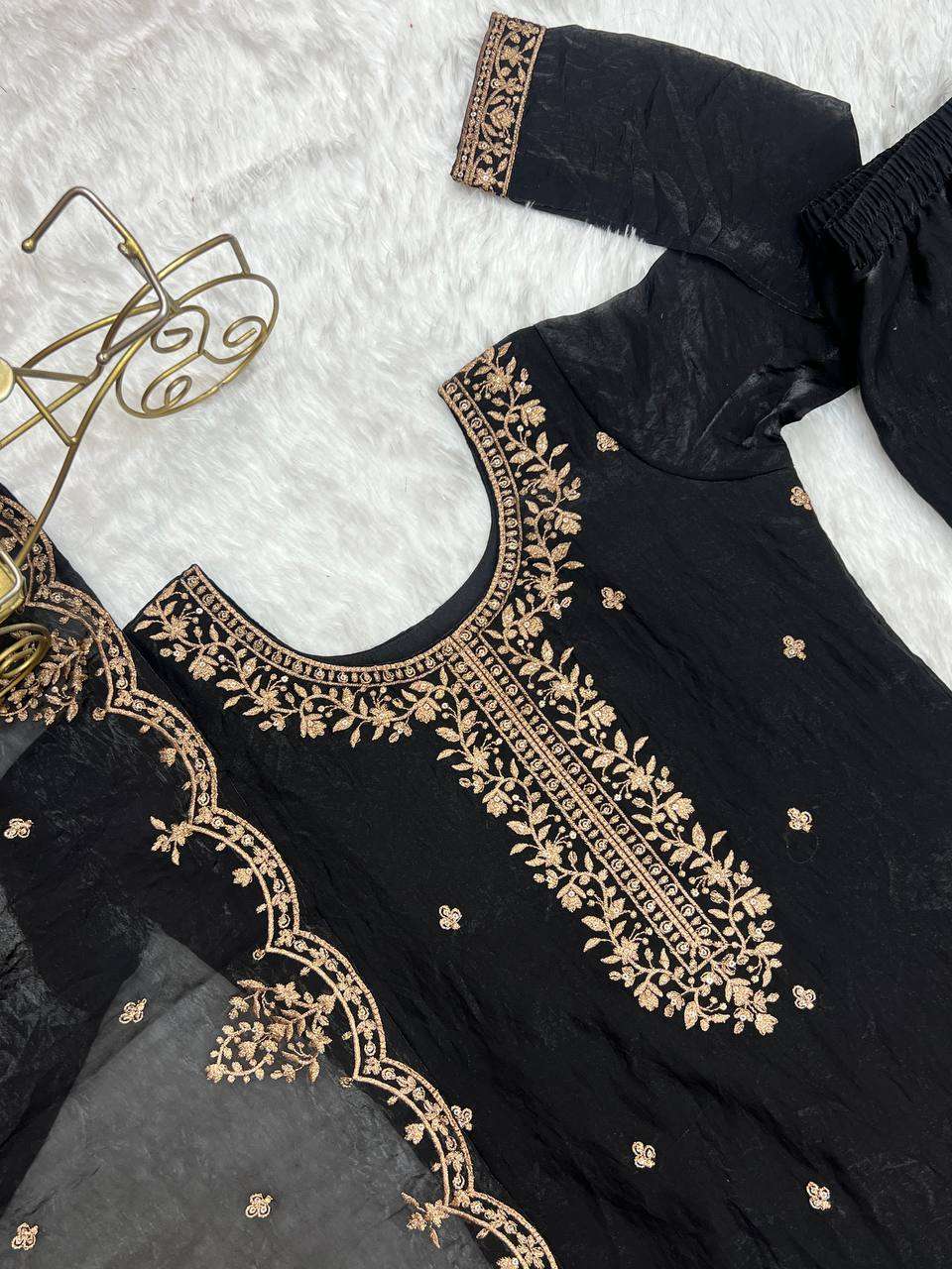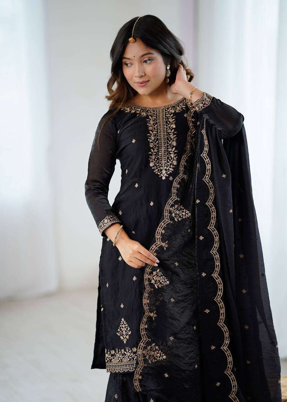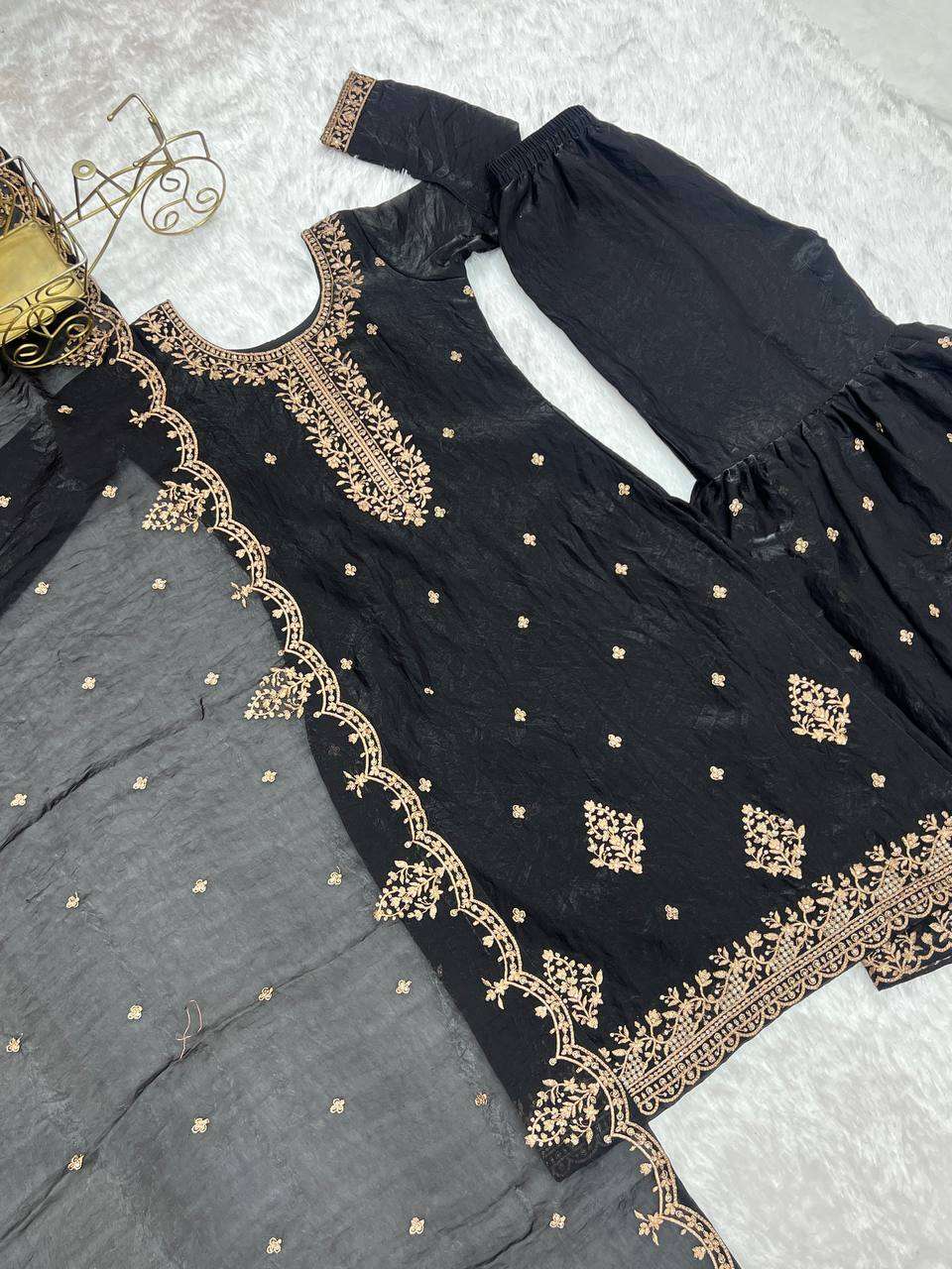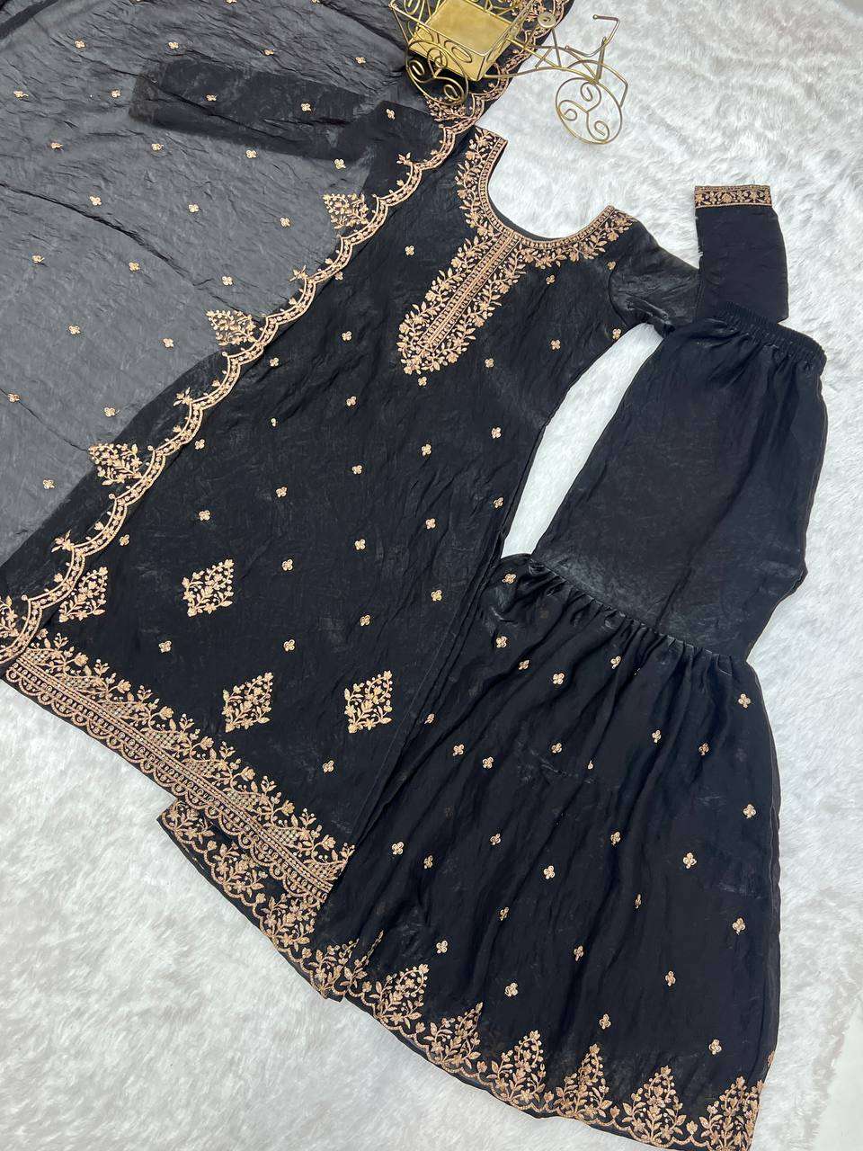 Women’s Pure Romansilk Chanderi Embroidered Kurti With Sharara & Dupatta Set