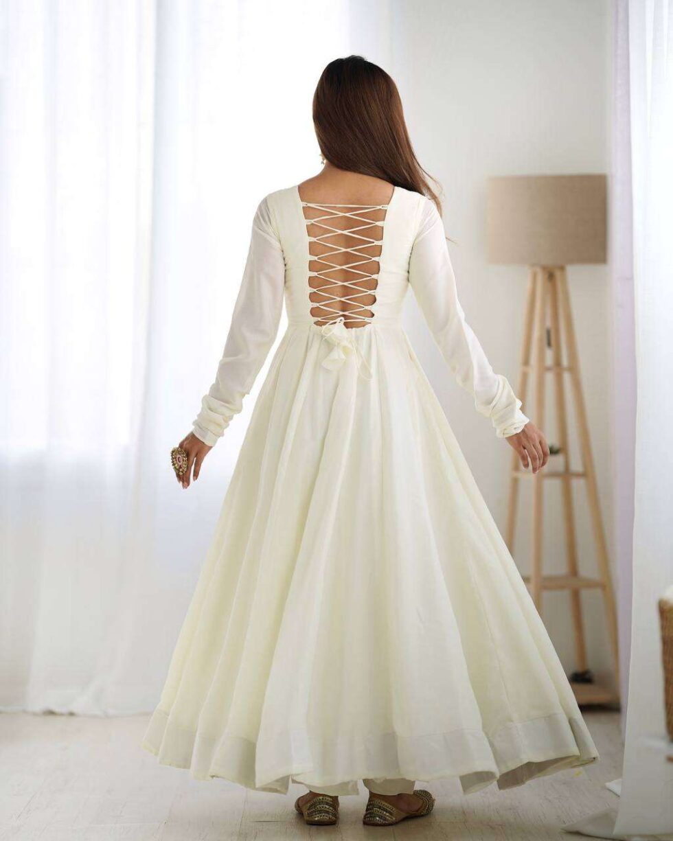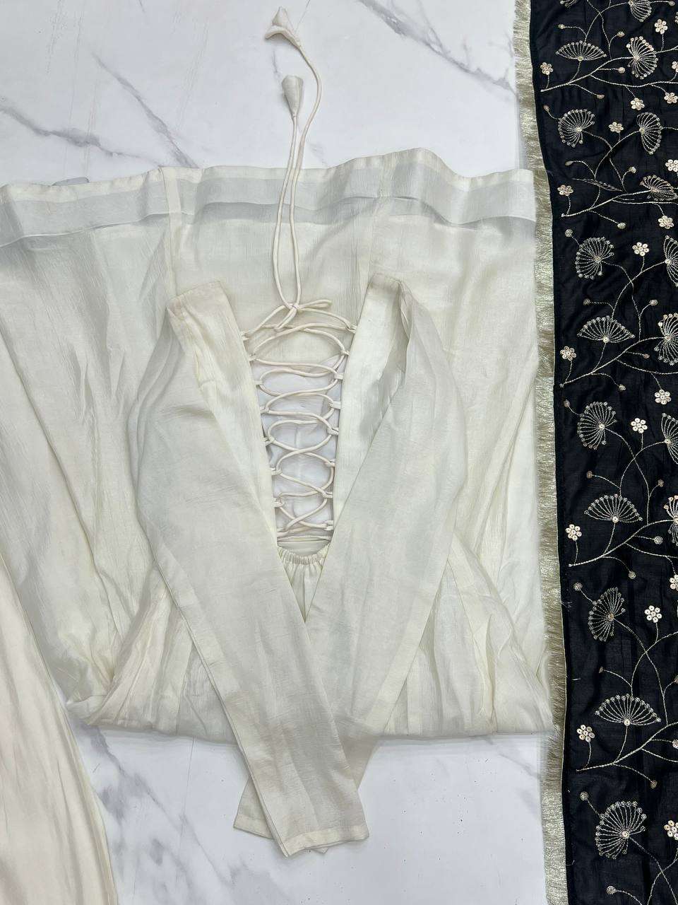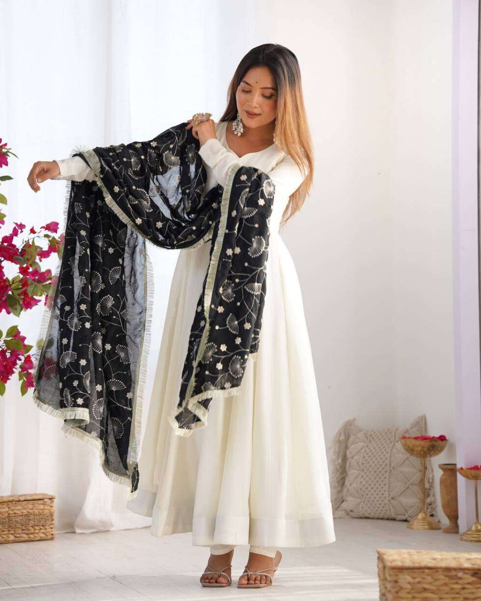 Womens Pure Romansilk Chanderi Plain Anarkali Kurti With Dupatta & Pant Set