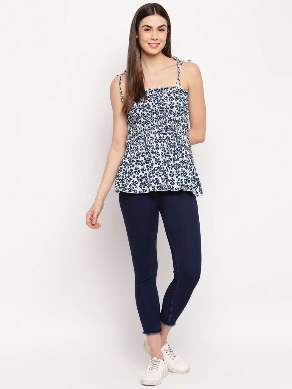 Women’s Rayon Printed Casual Summer Style Tie Shoulder Straps Free Size Tank Top ( Multi22)