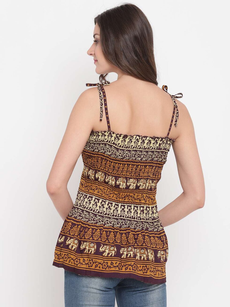 Women’s Rayon Printed Casual Summer Style Tie Shoulder Straps Free Size Tank Top ( Multi5)