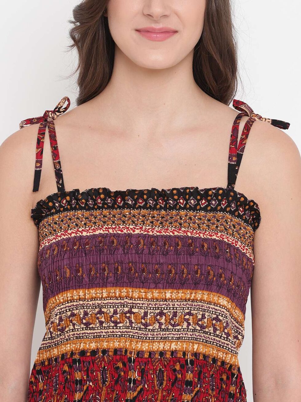 Women’s Rayon Printed Casual Summer Style Tie Shoulder Straps Free Size Tank Top ( Multi8)