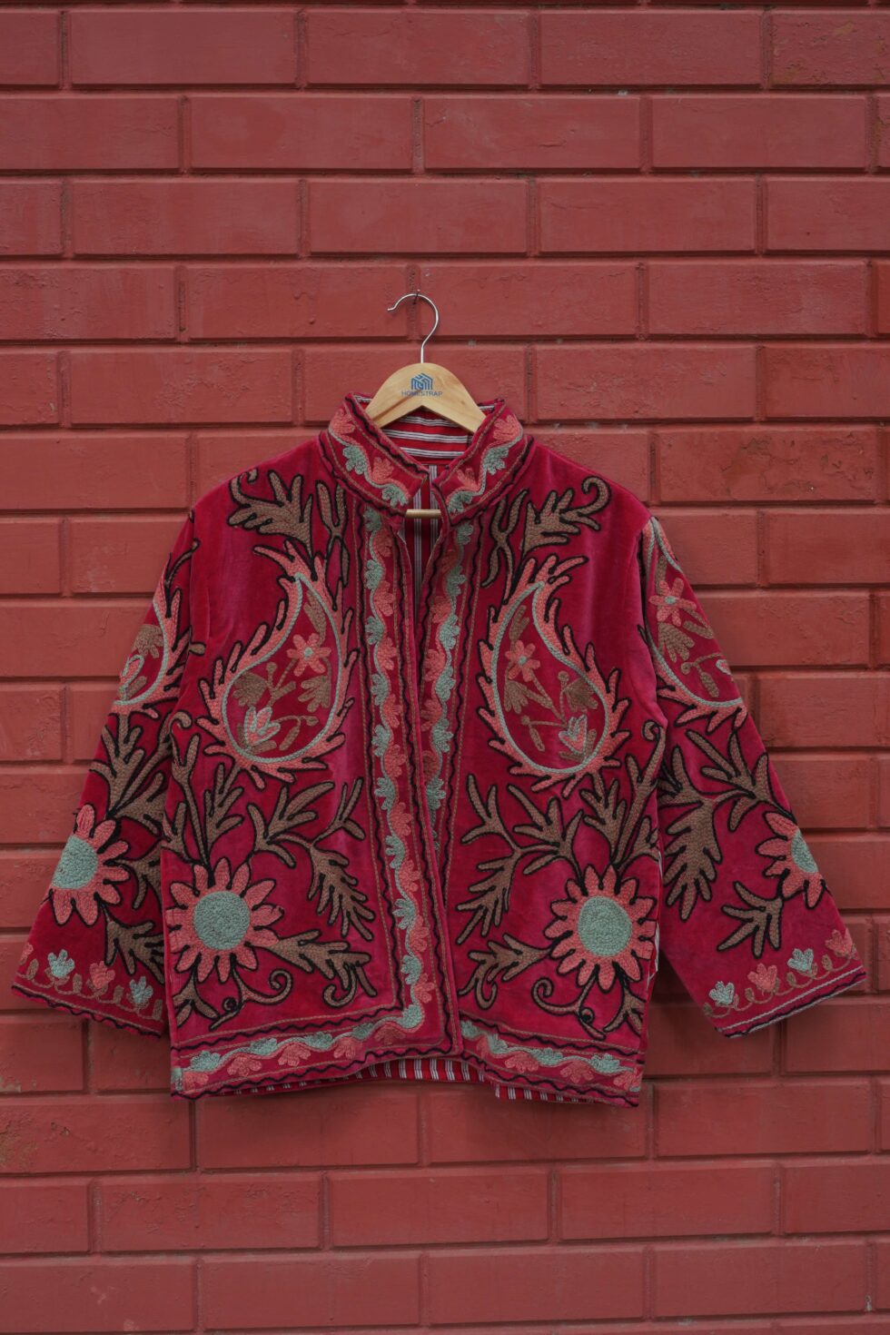 Luxurious velvet jacket featuring intricate Suzani embroidery. Perfect blend of elegance and tradition β€” ideal for festive and ethnic occasions.