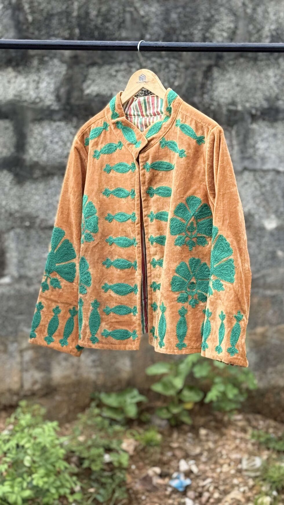 Luxurious velvet jacket featuring intricate Suzani embroidery. Perfect blend of elegance and tradition β€” ideal for festive and ethnic occasions.